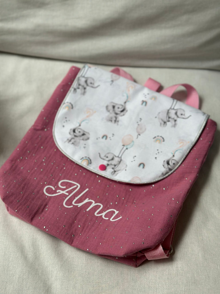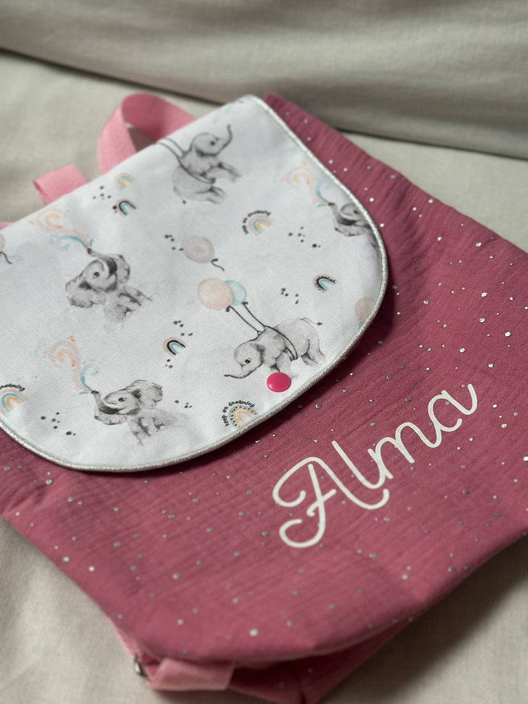 Sac à dos DOUBLE GAZE ROSE FRAMBOISE ET ÉLÉPHANT